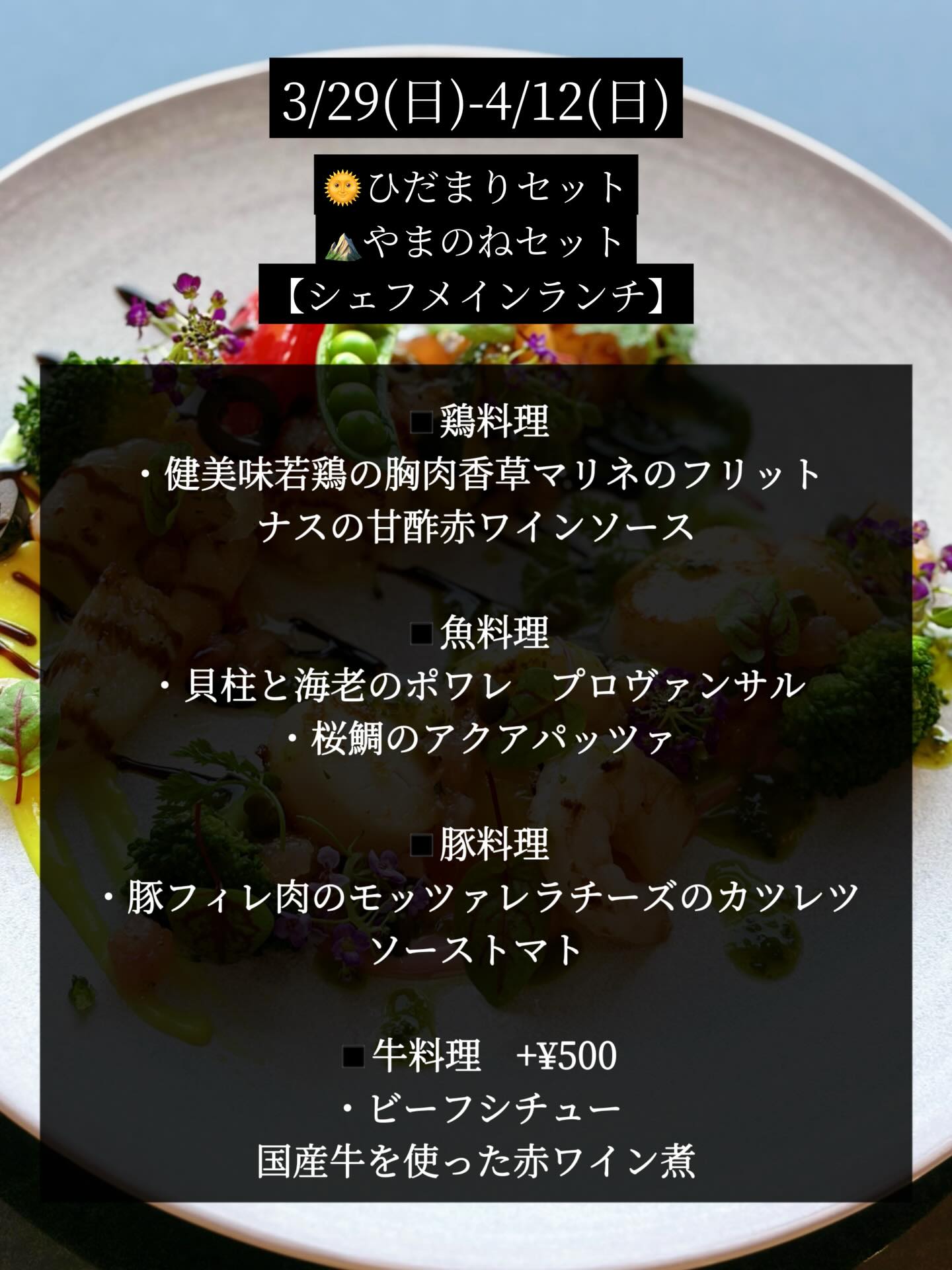 🍽️3/29-4/12 Lunchメニューのご案内です。