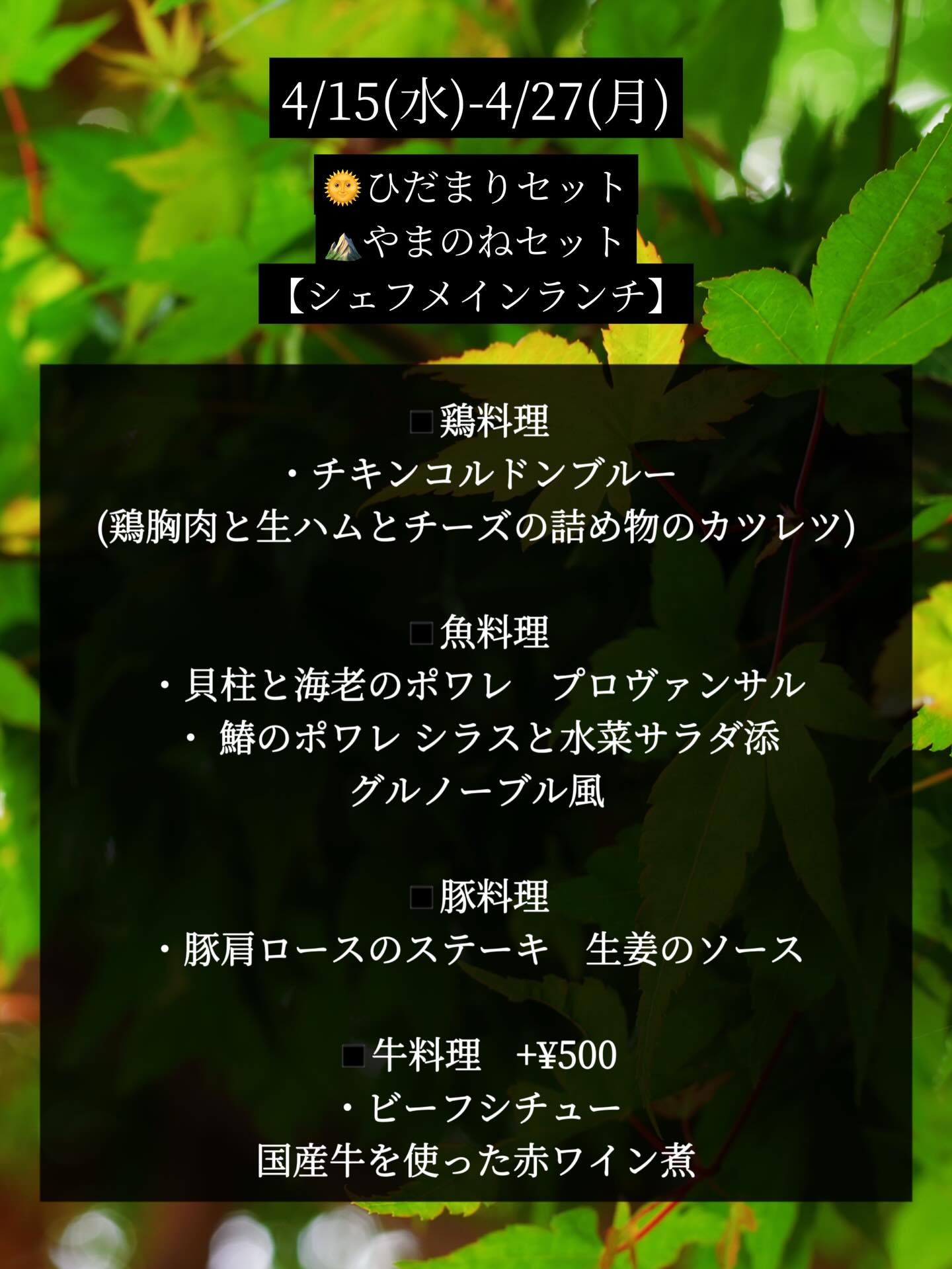 🍽️4/15-4/27 Lunchメニューのご案内です。